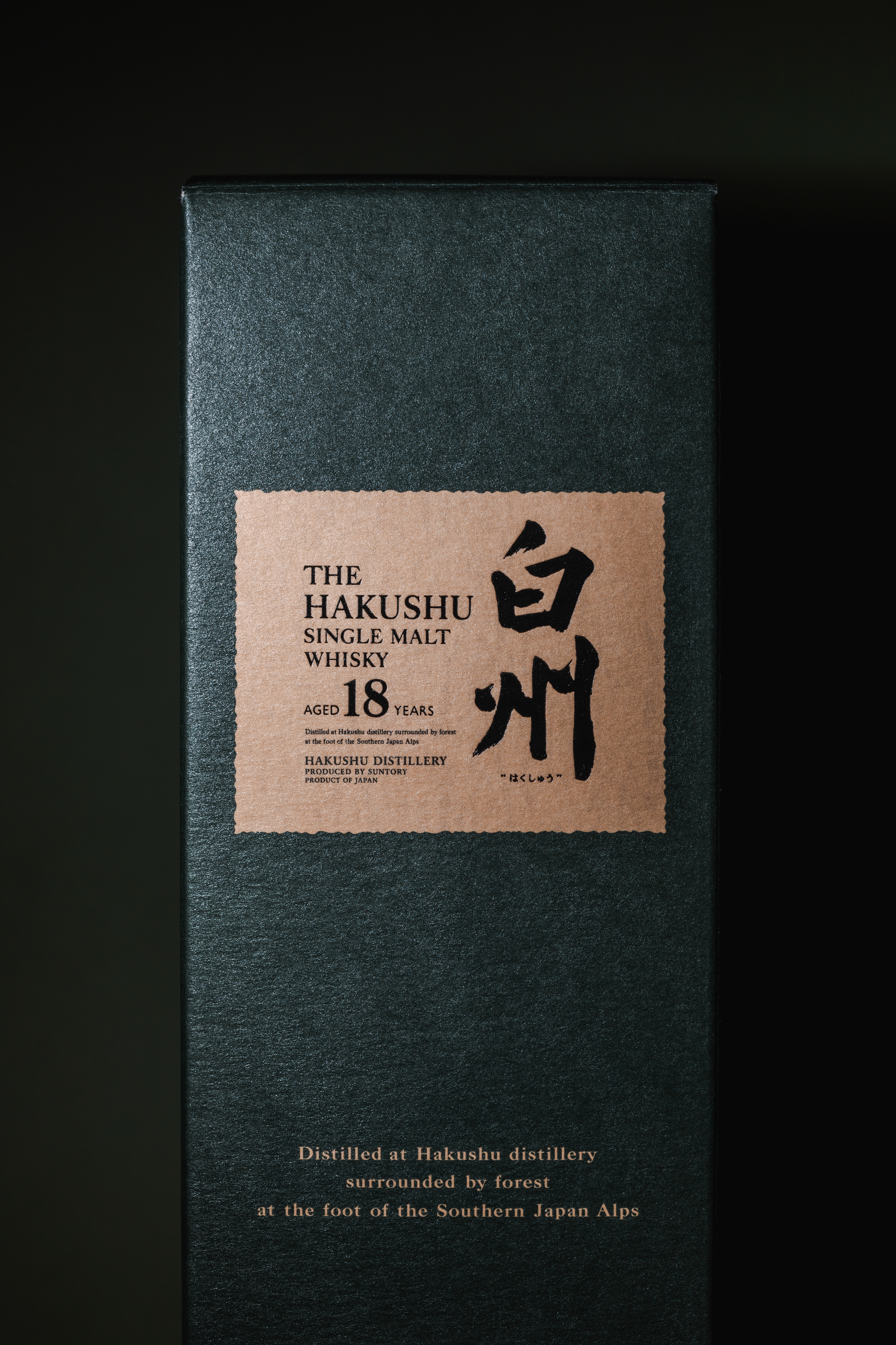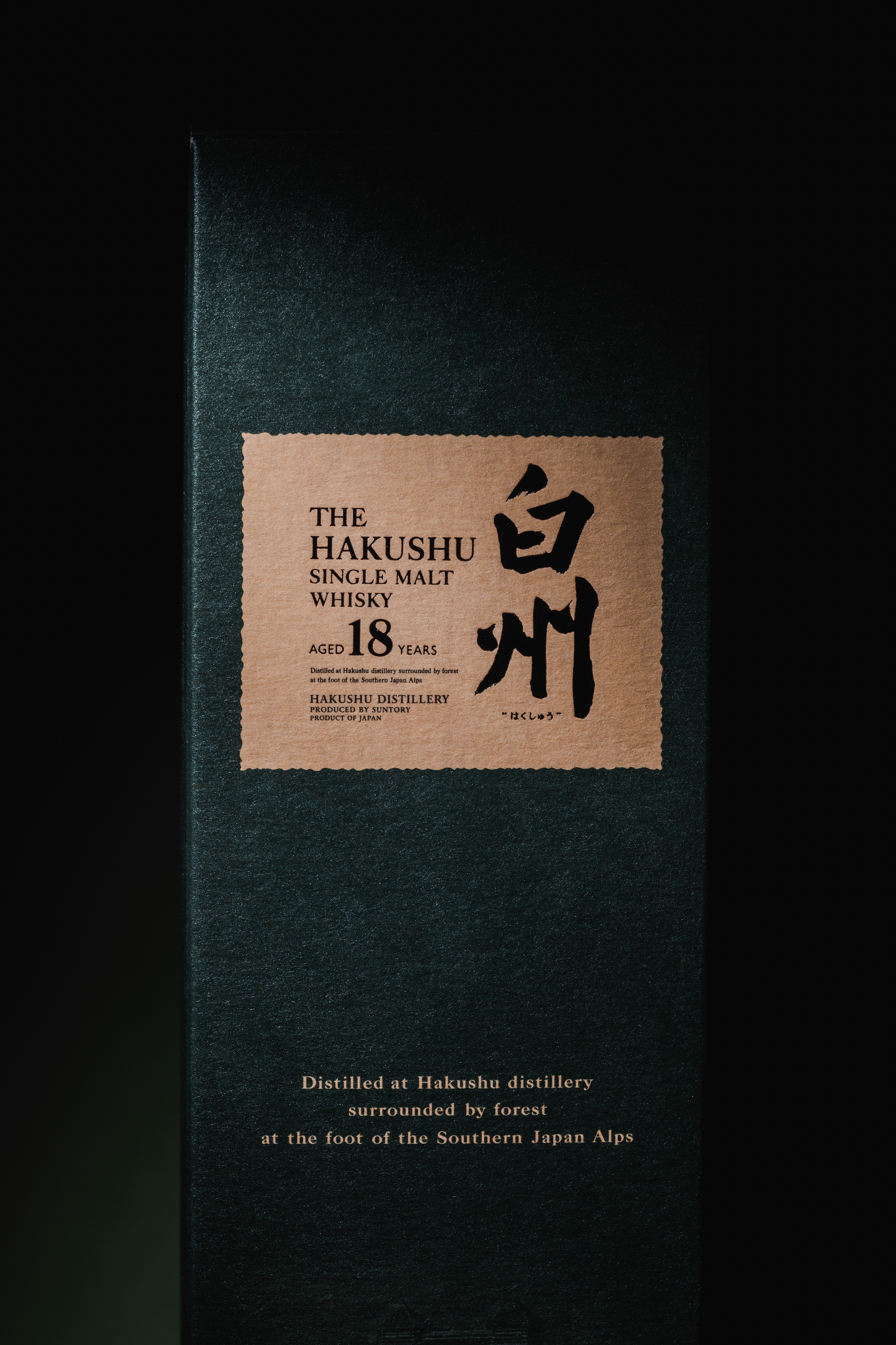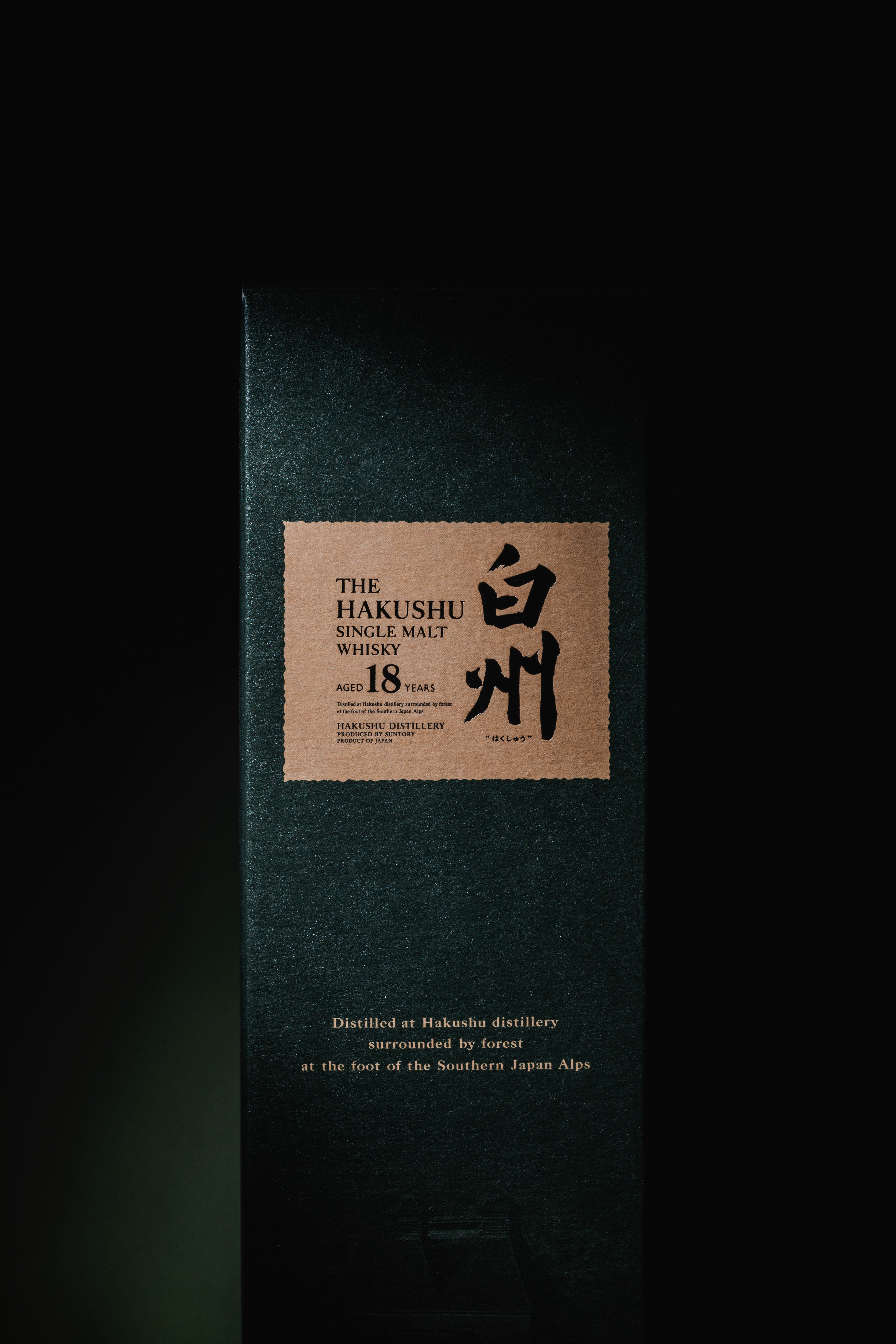 Packshot of the Hakushu single malt 18 Y.O. whisky box.